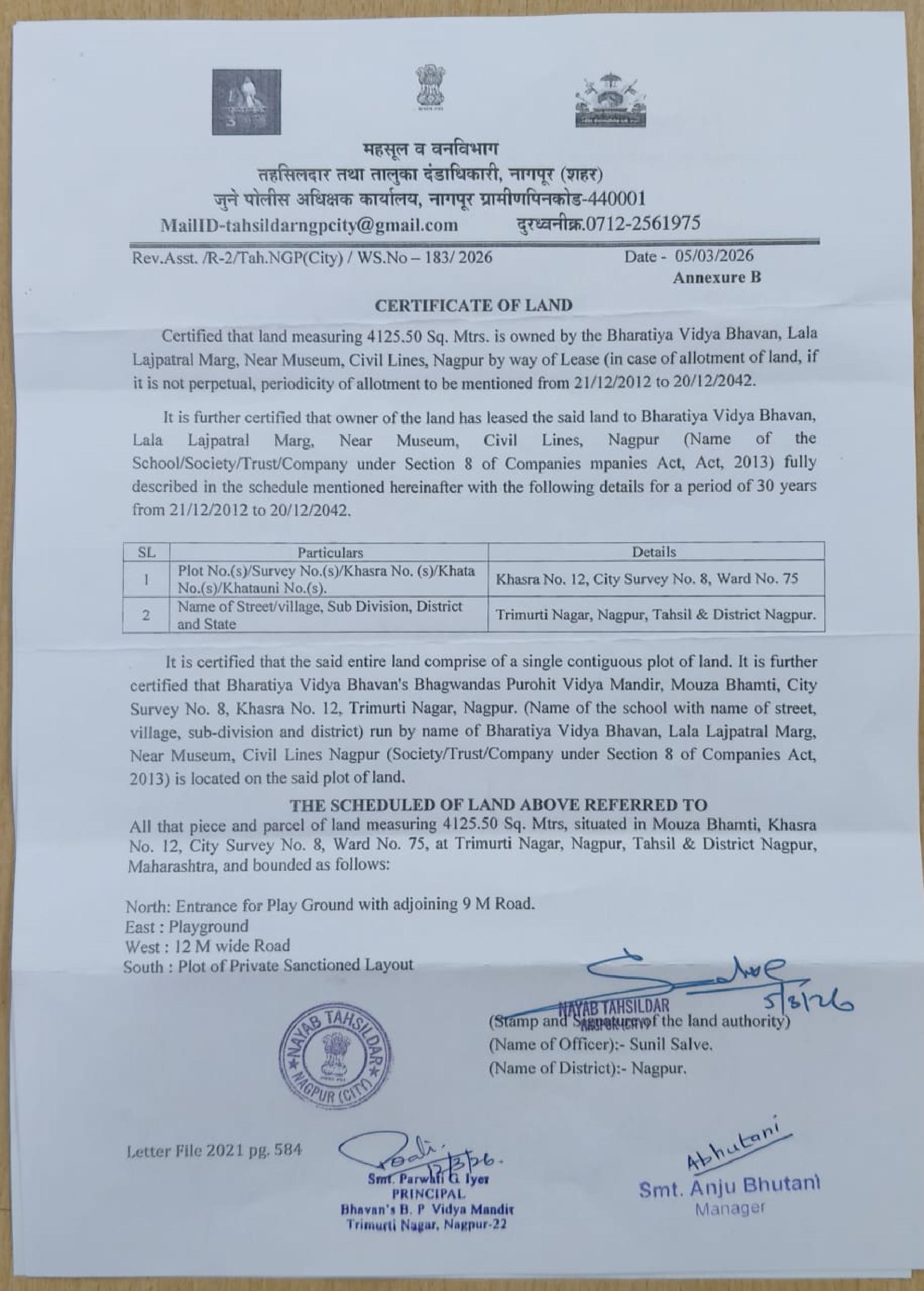 Certificate of Land & Built-Up Area